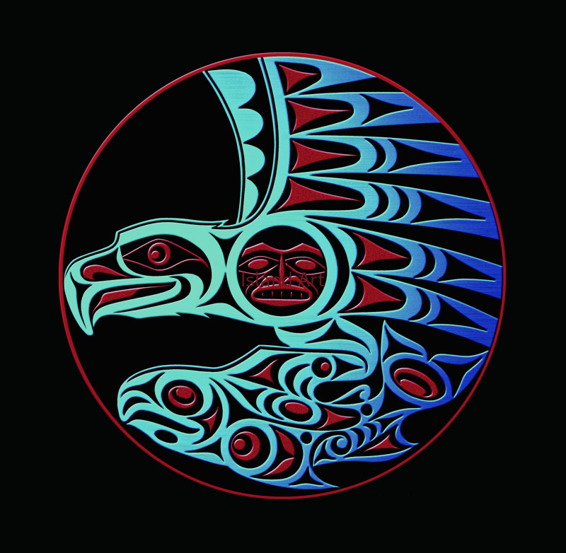 Joe Wilson – Eagle And Salmon. Available as square card (6 x 6). Optionally matted.